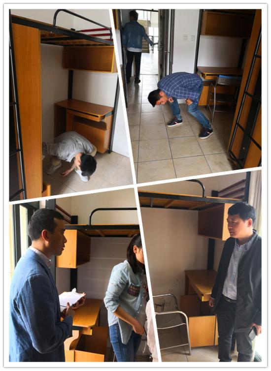 本届毕业生共计2103 人,涉及清退宿舍512间。学校专门成立毕业生宿舍清退验收小组,对毕业生宿舍清退验收统一部署,统一要求。5月7日第一批来自教育学院、艺术设计学院、工学院的90间毕业生宿舍进行清退验收。学校党委副书记、学保处处长曹云林、学校校监、学保处副处长周烨刚、学校校团委书记、学保处副处长包静波、学保处副处长刘洪伟组成四个验收组,带领教育、艺术、工学二级学院的总支正、副书记,正、副辅导员们一同参加清退验收工作。