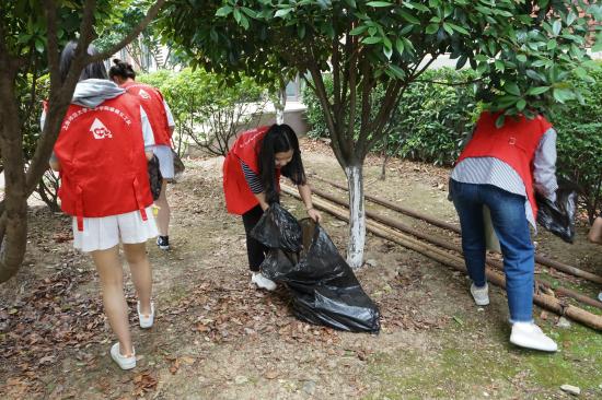 活动过程中,七组预备党员身穿红马甲,纷纷拿着火钳、垃圾袋等,清理着校园步道上的垃圾、草坪中的落叶,身影遍布明华楼、日华楼、月华楼、天华楼、晖华楼、昇华楼、文化长廊、车队、学校东大门两侧等区域。在正午的阳光下,预备党员们都热情高涨,充满干劲,有的在清理草坪中的杂草落叶,有的把从绿化带中拾起的垃圾、塑料袋等扔进垃圾桶,有的则用双手搬起地上不易清理的石块。