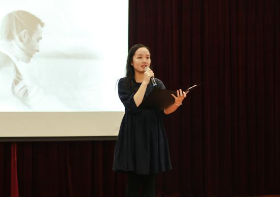 教育学院16学前教育2班兰海钰饱含深情地演绎了《悲壮的两小时》,将科马洛夫敢为天下先而悲壮赴死的大义和与亲人生离死别的悲伤展露得淋漓尽致。