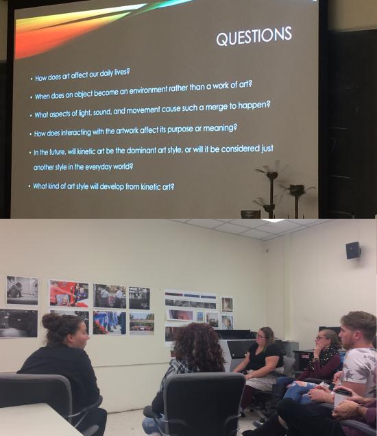 视觉艺术学院有非常浓厚的学术氛围,这跟展览馆的作用密不可分。学院在Visual Art Center(视觉艺术中心大楼)设有专门的Art Space Station(艺术空间站)展览馆一共两间,用来展示平时的课堂作业和学生团队创作的作品,诸如课程作品发布会,平面设计或者装置艺术等。此外,大学在小镇的汽车站专门设有独立的University Gallery(大学展览馆),由教授带队的4人组专门运营管理,学院每学期举行不低于10次的包括个人的、访问艺术家的,作品演讲,发布会,和作品展览等,形成非常浓厚的学术氛围。