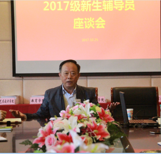 10月25日上午9:00,学保处在月华楼270会议室召开2017级新生辅导员代表座谈会。校党委副书记、学保处处长曹云林,学校校监、学保处副处长周烨刚,学保处助理以上干部以及来自各二级学院的9名新生辅导员代表参加了本次座谈会。会议由学保处常务副处长刘天翔主持。