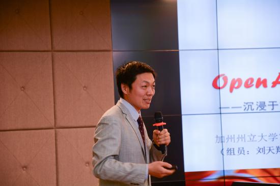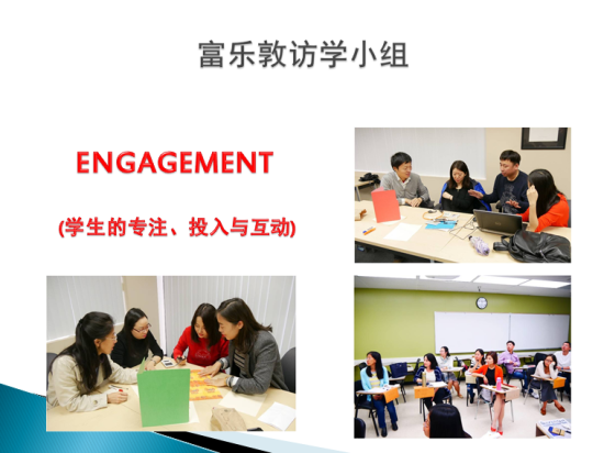 第二组的教师们紧接其后,作为“活力篇”的代表,刘天翔、邢靖文、肖肖、韩聪颖分别就在美国加州州立大学富乐敦分校的观察和体验到的活力课堂教学进行了交流。刘天翔老师介绍了总体的学习情况以及学生管理的创新课程教学;肖肖老师用英语分享了调动课堂气氛的四种方法;邢靖文老师介绍了如何借助“Kahoot”“Polleverywhere”等移动学习方法为课堂注入活力;韩聪颖展示了借鉴美国课堂组织形式开展的任务式教学法,借《心太软》的曲调,改编歌词,鼓励老师让学生学生身动、脑动,让课堂真正“活”起来,此情此乐令赴国外访学的教师们感同身受,与韩老师一起来了一次即兴大合唱。