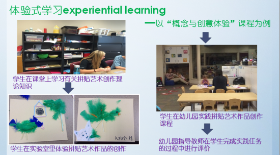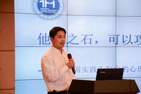 开场是“实践篇”,夏小英、杨艳、代维祝三位老师分享了在美国阿拉巴马大学和美国中央佛罗里达大学学习到的实践教学方法。夏小英第一个登场,全程使用流利的英语,详细阐释了阿拉巴马大学教育类学科以实践为取向的课程设计、课程教学和课程评价;代维祝用幽默的语言介绍了自己参与美国心理学专业博士、硕士和本科课程的心得以及如何在天华的讲台上学以致用,一个个生动鲜活的案例将在座老师逗得捧腹大笑;杨艳老师展示了阿拉巴马大学小学教育所有专业课程中实践学习所占的比例,提出了如何在现有课程体系中更为有效地嵌入实践教学的设想。