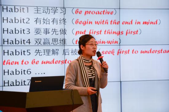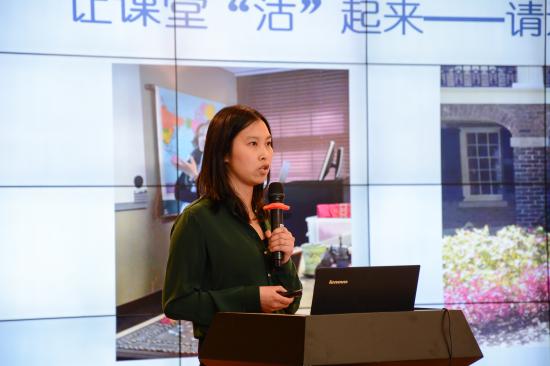 第四部分是主持人黄蔚的角色转换,她从思辨的角度分享了她在新加坡南洋理工大学的学习,分析了新加坡南洋理工大学的办学理念,畅谈了学习感受,主题是“思考型学校,学习型国家”。黄老师介绍了在南洋理工的教学中,如何利用中西文化的碰撞,来培养学生的思辨能力,如何在吸收外来文化的同时坚持自己的传统文化的吸纳等话题,与我校的办学理念不谋而合。