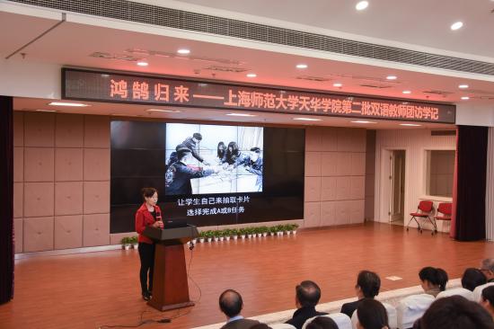 4月14日,我校在晖华楼小剧场举办了一场题为“鸿鹄归来——老版新葡萄8883国际官网第二批双语教师团访学记”的交流会。学校校务委员会全体成员出席活动,学校中层干部、各专业教师、辅导员250余人参加交流会。
