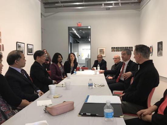2017年4月27日,我校执行董事长石伟平、校长叶才福以及国际交流处处长胡珍应邀回访了美国伊利诺伊州立大学。对方校长Dr. Larry Dietz, 教务长Dr. Jan Murphy等重要校级领导参加了签约仪式。在前期合作洽谈的基础上,双方签署了视觉传达专业的国际合作办学协议。根据协议内容,联合培养项目将于2017年9月开始招生,其中三分之一的课程将由外方教师来沪授课。第四年学生可赴美国伊利诺伊州立大学学习,条件合格的学生将获得两校学位证书。