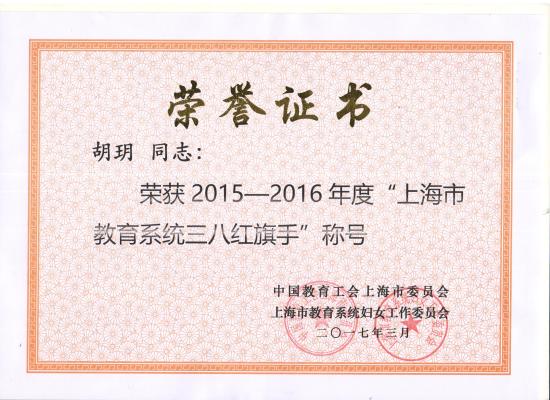 (胡玥荣获“上海市教育系统三八红旗手”称号)