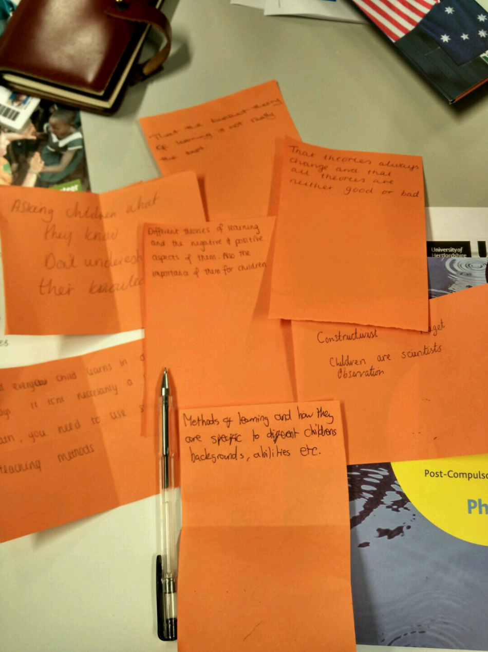 在接受高等教育课时,我们觉得非常有意思的是,两位教授都年事以高,但对于教学一事一方面充满敬畏,事事讲清,条条注意。另一方面则是在方法上保持着一份童心,只见他们一会儿掏出一些缤纷彩色的即时贴要我们写上自己的想法,一会儿拿出积木要求我们搭建一个理想中的课堂环境。这实实在在的是贯彻了他们如何在课堂上启发学生的理论——充分的运用各类精心布置的环节,材料,调动学生与听众的参与度。通过听众主动的思考与反馈,一环一环逐渐走进他们设置的学习目标。