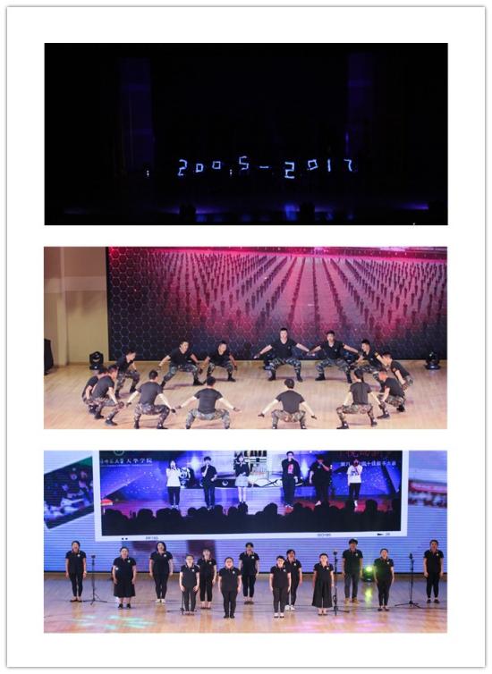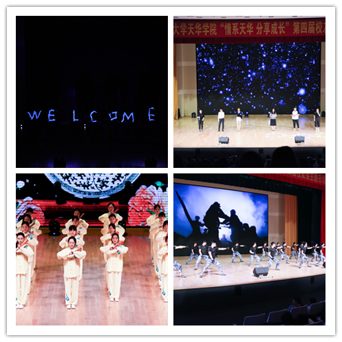 文艺汇演由校团委精心准备,由来自艺术设计学院辅导员沈捷老师、语言文化学院辅导员杨央老师以及两名在校学生主持。《忆天华》暖场视频、改编歌曲《我喜欢》、《欢迎回家》荧光舞、功夫扇、军体拳表演,副辅导员风采展示,全体留校辅导员的诗歌朗诵与合唱,既展现了天华人阳刚之气,又体现育人文化内涵,场面壮观,精彩绝伦,无不体现了天华的新发展与新特色。现场气氛热烈,校友们大声呼喊台上熟悉的老师、同学的名字,台上节目温馨互动,感人至深,校友们热泪盈眶,其中来自教育学院的一名校友深情地说道:“此情此景让我感觉从未离开过天华,精彩的活动又让我仿佛回到了美妙的求学时光。”