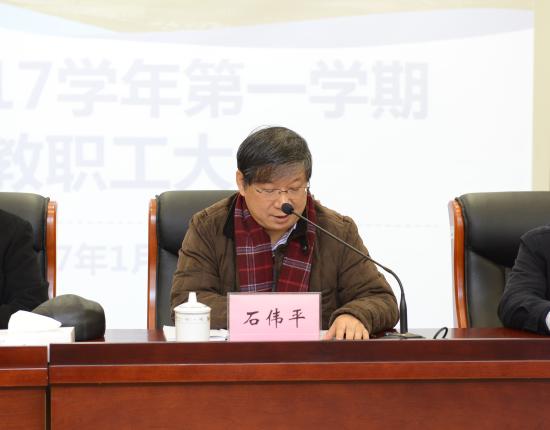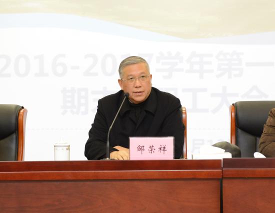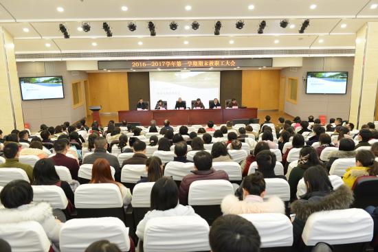 2017年1月13日上午9:00,学校在晖华楼报告厅召开了2016—2017学年第一学期期末教职工大会,学校董事长邹荣祥、执行董事长石伟平、党委书记韩晓玉、校长叶才福、总校监郭伟奇、学校顾问陆建非在主席台前就坐。会议由执行董事长石伟平主持。