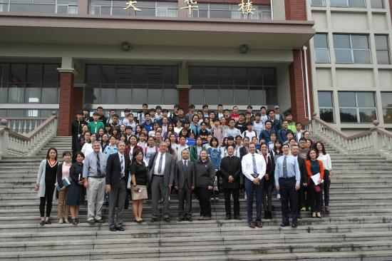 2017年10月12日上午10点,我校健康学院康复治疗学专业中美合作班校方见面会在日华楼智慧教室隆重举行。美国威斯康星协和大学学术副校长William Cario、国际教育部执行主任David Birner、康复治疗学专业主任Ted King、亚太地区学术伙伴关系发展高级主任Christine Kao,以及协和大学加州尔湾分校的招生管理和项目发展副校长Dr. Doug Grove、国际研究项目Damian Wyman教授专程到校与85名17级康复治疗学专业新生见面。同时,校长叶才福、健康学院院长祝亚平、国际交流处处长胡珍、中美合作项目外教Jenna、健康学院党总支书记蔡勇永、康复治疗学专业主任刘敏等出席见面会。