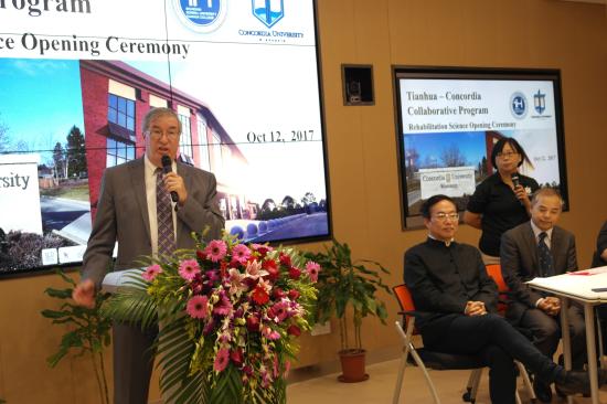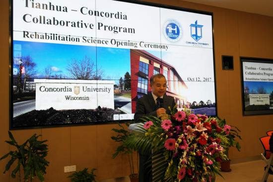首先,校长叶才福对威斯康星协和大学一行领导和嘉宾来校表示热烈的欢迎。叶校长介绍我校康复治疗学专业中美合作办学项目是中华人民共和国教育部批准的首个康复治疗学专业项目,对此两校高度重视,真诚合作,对合作办学项目建设投入了充分的教育资源。同时,叶校长介绍威斯康星协和大学是一所具有悠久历史的优秀大学,校园环境优美,设施齐全,展望了同学赴美学习的美好前景。鼓励同学们要抓住学习机遇,不畏困难,敢说敢想,积极提高英语水平,掌握专业技能,为赴美学习打好基础;牢记“为做人而学习”的校训,使自己成为一名“专、通、雅”全面发展的优秀的天华人。