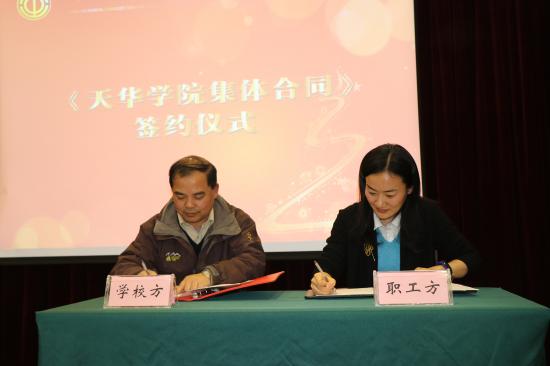 审议通过后,校长叶才福与工会主席许岳当场签署了《老版新葡萄8883国际官网集体合同》。最后,学校党委书记韩晓玉上台发言。韩书记在祝贺第二届教代会第二次会议取得圆满成功的同时,对工会提出了三点希望:一、工会要始终围绕董事会的要求扎实开展好各项工作;二、工会要始终牢记使命宗旨,不忘初心,砥砺前行;三、工会各项工作要做深、做细、做实。