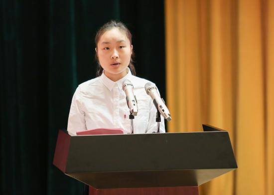王思钦同学表达了初入天华的欣喜与作为一名天华学子的理想与担当。她用“我的大学”、“勤奋好学”、“青春梦想”三个关键词来表达对大学生活的美好期许。她代表全体新生表达了未来与梦想同行,迈出千里之行的第一步,坚实地走好漫漫征程的每一步。王思钦同学的发言非常朴实感人,展现了我们新一届天华学子的良好精神风貌。