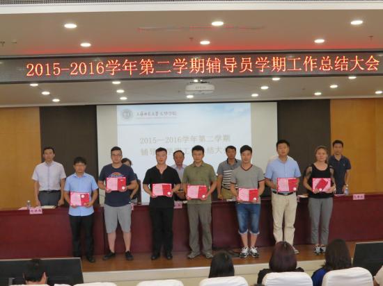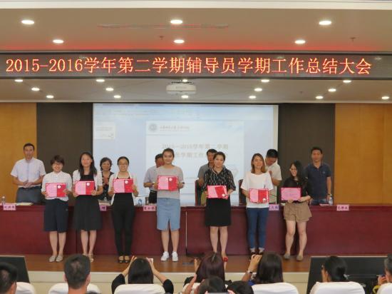 会议首先由学保处副处长周烨刚老师宣读了《2015-2016学年第二学期优秀辅导员、优秀保卫干事的表彰决定》,并现场颁发荣誉证书,10名专职辅导员、5名保卫干事获得表彰。