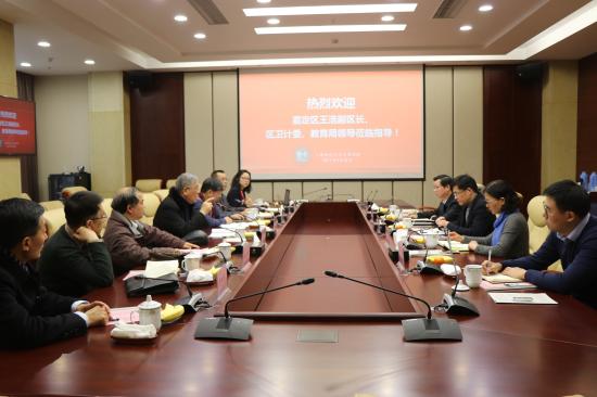 淅淅沥沥的小雨,将天华学院的天空洗得一片湛蓝。2月22日下午,嘉定区王浩副区长冒雨率区卫计委方云芬主任、区教育局姚伟局长、区府办邵刚副主任等工作组一行到我校进行工作调研。