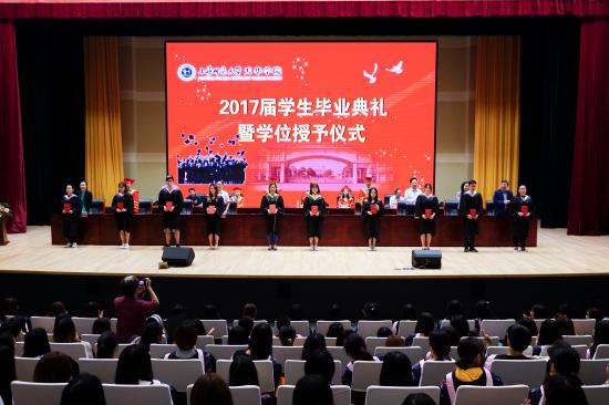 2017年6月16日,我校在晖华楼大礼堂隆重举行2017届学生毕业典礼暨学位授予仪式。校长叶才福、总校监郭伟奇、特别顾问陆建非,以及学校全体校务委员会领导、各二级学院院长和教师代表出席了毕业典礼,典礼由龚春蕾副校长主持。