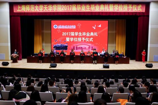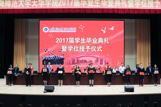 郭伟奇总校监宣读了《关于公布和表彰2017届上海市高等学校优秀毕业生的决定》,我校有84名同学被评为上海市高等学校优秀毕业生;陆建非顾问宣读了《关于表彰2017届天华学院优秀毕业生的决定》,178名同学被评为我校优秀毕业生。第一批参加辅修专业的同学李明珠等8名同学上台领取了学业证书。