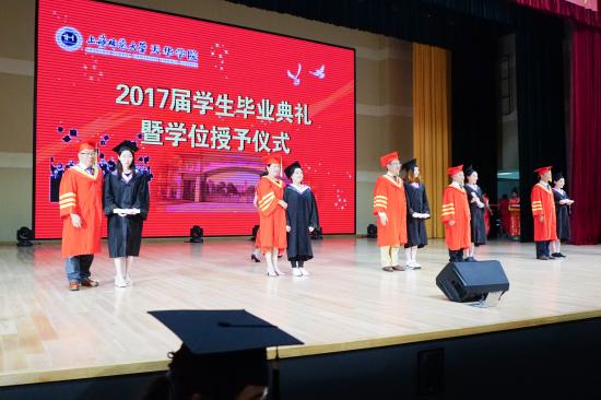 第二阶段活动为2017届毕业生学位授予仪式,校长叶才福、总校监郭伟奇、特别顾问陆建非和各二级学院院长给2017届毕业生逐一授予学士学位。在神圣庄严的音乐声中,毕业生们身着学士服,登上受礼台,从校领导手中接过学士学位证书,并与校领导合影留恋,授予仪式从上午10:30开始,至下午13:30结束,历时近三个小时,顺利圆满结束。