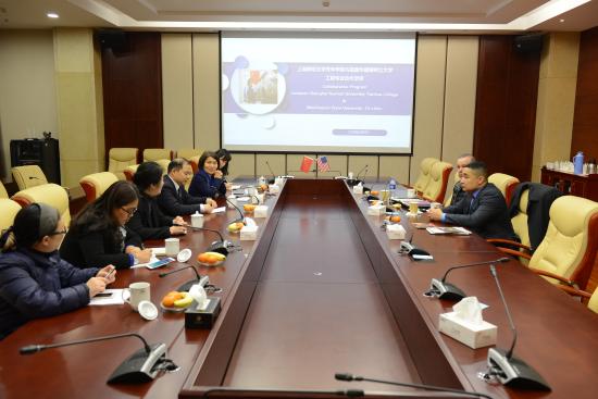 3月17日,美国华盛顿州立大学三城校区(Washington State University Tri-cities)校长Young一行应邀回访我校,洽谈国际合作项目。校长叶才福、副校长吴国兴、国际交流处处长胡珍、工学院常务副院长林院长及教师代表出席会议。