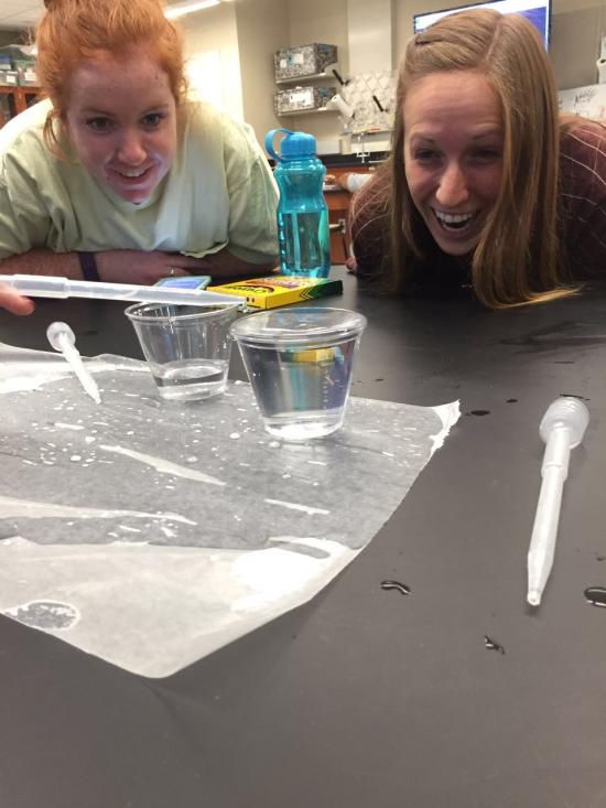 (阿拉巴马大学小学教育专业学生在科学课上做实验)
