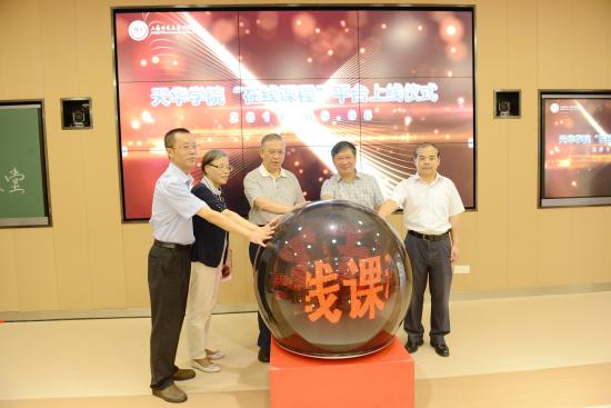 随后,邹荣祥董事长、石伟平执行董事长、韩晓玉书记、叶才福校长、郭伟奇总校监共同按下启动球,天华“在线课程”平台正式上线。