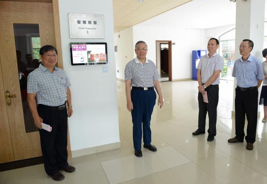 2017年9月8日上午,我校在日华楼隆重举行智慧教室启用暨“在线课程”平台上线仪式,学校董事长邹荣祥、执行董事长石伟平、党委书记韩晓玉、校长叶才福、总校监郭伟奇,校务委员会其他委员及相关处室负责人出席了仪式。朱国权副校长主持仪式。