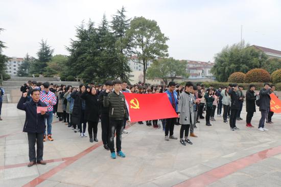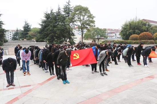 在庄严的国歌声中,瞻仰仪式正式开始。首先由学生代表敬献花篮,全体师生向革命烈士三鞠躬以示缅怀和悼念,后奏响国际歌。最后,入党积极分子在单杰副校长的带领下集体宣誓,决心继承先烈遗志,牢记历史使命,践行校训,全心全意为人民服务,在学习工作中发挥先锋模范作用。