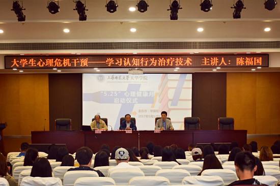 5月12日上午9:30,我校在晖华楼报告厅举办“5.25”心理健康月专家讲座“大学生心理危机干预——学习认知行为治疗技术”,党委副书记、学保处处长曹云林,全体正副辅导员,各二级学院学生心理委员,学生骨干出席,学保处常务副处长刘天翔主持讲座。