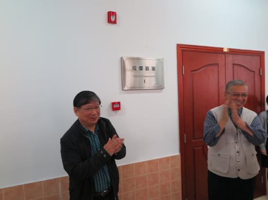 邹荣祥董事长、石伟平执行董事长为观摩教室启用揭牌。叶才福校长宣布:“观摩教室正式启用”。