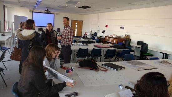 除了语言课程和教育课程,我们还有机会参与各专业课程,并走进学生的工作室和实验室实地感受教与学的过程。艺术设计学院的图形设计课非常注重学生对于自己创意构思和表达能力的培养,Adam老师要求学生学会如何呈现自己的创意,而呈现的手段是可以多样化的。他常在课上邀请平面设计领域的社会实践者参与到课堂教学中,准备丰富的图片资料及实践案例供学生交流学习。