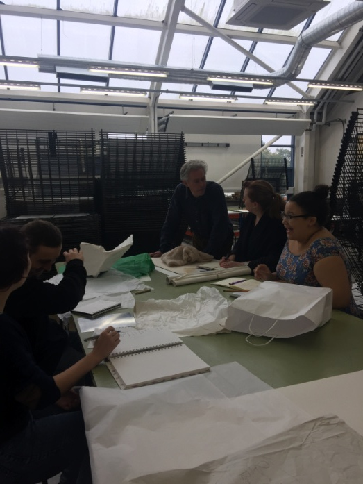 Michael教授的印刷工作室里,不同年级的学生、社会工作者及艺术家可以随时参与教学,共同完成作品以及为毕业生提供就业指导。Michael教授不主张单纯地教会学生某个印刷技能,而是让学生学会灵活运用技术手段为自己的创作及实际需要所用。专业教授同时在教学中完成艺术创作,学生在技术指导教师的辅导下完成自己的专业实践,学生的学习过程则是完全自由和放松的。
