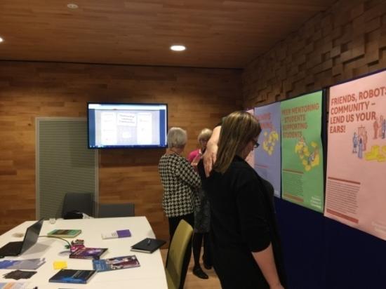 我们的教育专业课程无论从内容还是形式上都是丰富多彩的,Joy教授及相关老师都非常关注学科知识的融会贯通,主张打破学科界限、互惠互利,课上都会有各专业的教授为我们讲授专业领域类的最新研究成果,并与我们畅谈专业与专业之间的可借鉴性问题,听取来自各方面的意见和建议,其中还包括来自艺术设计学院的教授提倡的关于“图形在教学中的运用”讲座。在本月中旬,我们还有幸参观了Joy教授的师生团队共同开发的专业拓展项目宣传海报展,从与各专业项目负责人的交流中了解了师生合作的新理念。