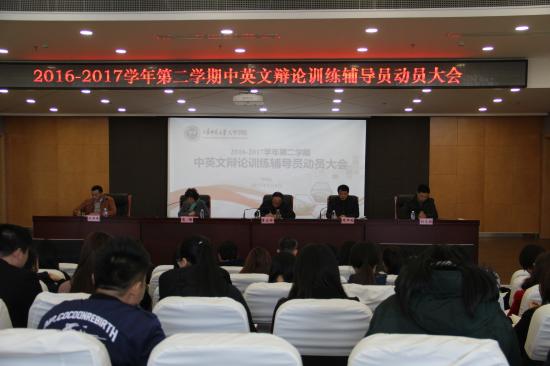 周老师首先明确了开展中英文辩论训练的目的和意义,希望全体学生工作者统一思想,同心协力,将中英文辩论训练工作落到实处。接着,学保处常务副处长刘天翔从指导思想、组织形式、实施方法、辩论议题、具体要求五个方面详细解读了中英文辩论训练实施方案。随后,各二级学院党总支代表分别上台发言,纷纷表态将在学校统一领导下,积极响应,认真落实,保质保量完成中英文辩论训练。