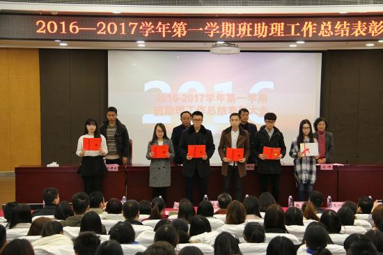 班助理,一支富有理想和责任的学生自治管理队伍,用青春、热情架起联系学生与老师之间的桥梁。为表彰和感谢优秀班助理的辛勤付出,2016年12月22日下午16:30,学校在晖华楼报告厅隆重举行2016—2017学年第一学期班助理工作总结表彰大会。校党委副书记、学保处处长曹云林,校监、学保处副处长周烨刚,校党委书记助理凌琦,学保处副处长、校团委书记包静波,各二级学院党总支书记以及班助理负责老师出席了此次大会。