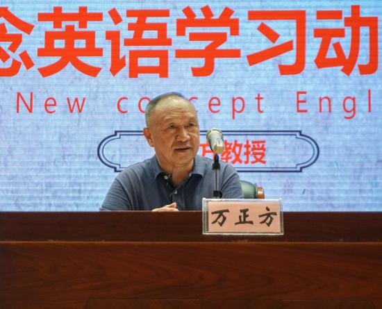 本次动员大会是继2017级新生入学教育后,万教授再一次与新生互动,他以一名长者身份,从其40余年英语教学工作经验出发,以诸多身边鲜活的成功案例教育新生,大学生学好英语将会终身受益。会议伊始,同学对万教授百忙之中抽空莅临,全场报以热烈的掌声。