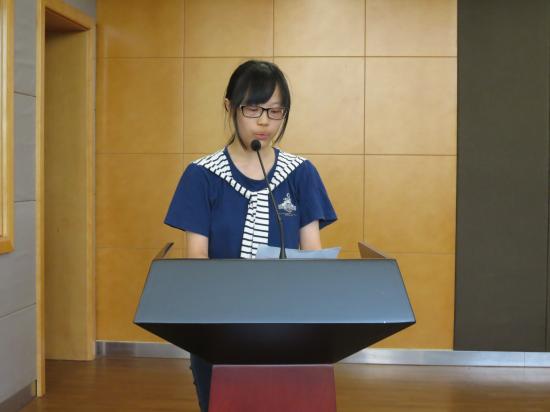 (管理学院专升本新生卢怡箐上台发言)