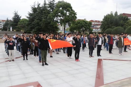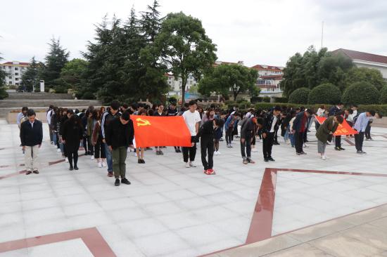在庄严的国歌声中,瞻仰仪式正式开始。先由入党积极分子代表敬献花篮,全体师生向革命先烈三鞠躬以示缅怀和悼念。随后,在单杰副校长的带领下全体学员进行了集体宣誓,决心牢记历史使命,继承先烈遗志,践行校训,在学习工作中发挥先锋模范作用,争取早日加入中国共产党,为人民服务。