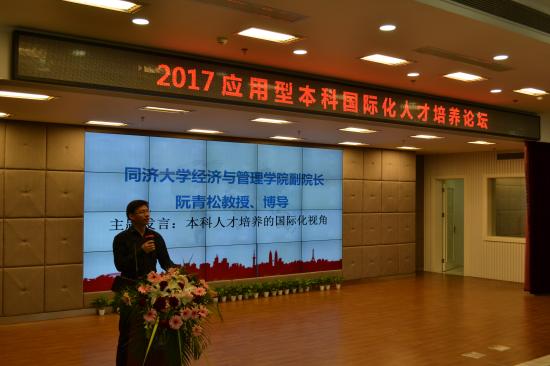 同济大学经济与管理学院副院长阮青松教授做了题为“本科人才培养的国家化视角”的主题发言。他分享了同济大学在本科人才培养方面的一些经验和做法,让与会嘉宾深受启发。