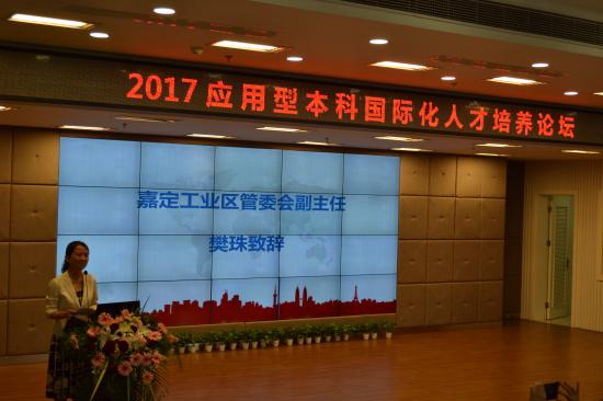 根据中央的战略部署,上海正在加快建成“四个中心”(即国际经济中心、国际金融中心、国际航运中心和国际贸易中心),建成社会主义现代化国际大都市,进而建成世界城市。上海建设“四个中心”和国际化大都市,必须面向国际国内两个市场,充分利用国际国内两种资源。这关键取决于高水平的人才与高质量的教育。在此背景下,2017年6月8日,我校联合上海嘉定工业区管理委员会、上海嘉定职业教育集团,举办“2017应用型本科国际化人才培养”论坛。论坛由上午的主题会议、下午的圆桌论坛和学生讲座三部分组成。与会嘉宾有来自市教委评估院、嘉定地方政府、各兄弟院校、企业界的领导和专家。