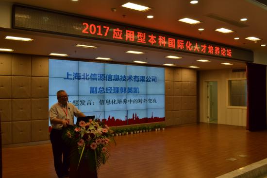 上海北信源信息技术有限公司副总经理郭英凯与大家分享了“信息化培养中的对外交流”。他从信息化的趋势出发,介绍了目前企业对人才的最新需求。在信息化培养中,汲取国外经验,加强对外交流,显得日益重要。