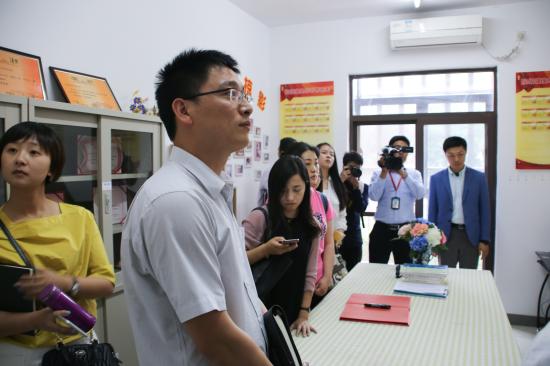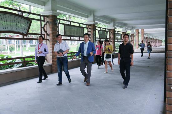 在学保处常务副处长刘天翔的陪同下参观了学生宿舍、生活区综合治理办公室、宿舍党员工作站、文化长廊、大礼堂和图书馆。随后,在明华楼报告厅召开座谈会。