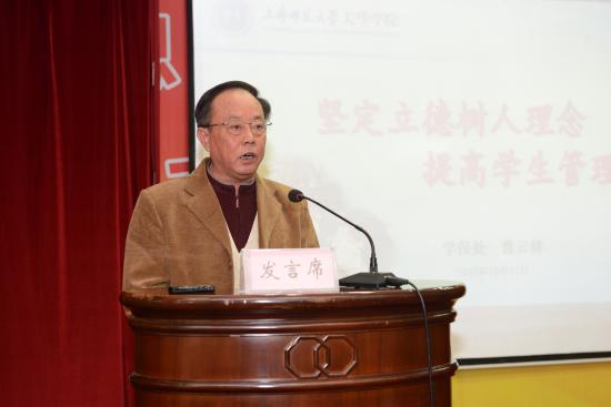 党委副书记、学保处处长曹云林就如何提高学生管理水平发言,从用天华校训精神提升学生的道德水准、用正副辅导员队伍铸就特色天华品牌、用责任意识提升担当精神、用思维创新提升工作的方式方法、用“零起点”安全意识提升风险控制能力等五个方面,表明了学生管理部门的态度,数据详实、措施得力。