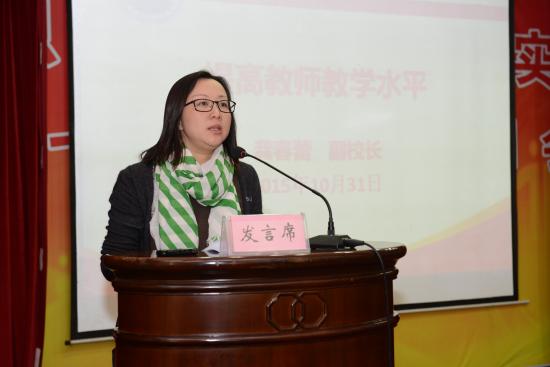 副校长龚春蕾就如何提高教师教学水平,从问题、认识、行动三个方面进行了发言,指出教学质量、教学水平的提高,一方面需要在学校层面把握方向,让心往一处想,力往一起使,另一方面需要全校每一位教师在认同的基础上积极投入。