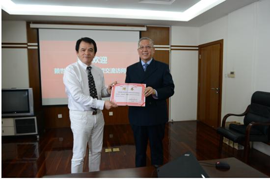 (校领导与赖世雄教授交流)