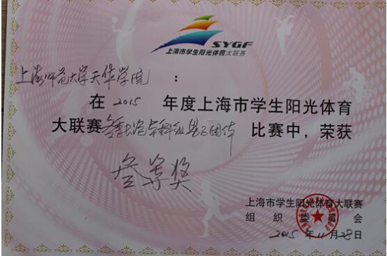 2015年11月28日,上海市学生阳光体育大联赛(高校组)冬季长跑比赛在上海市第二工业大学成功举行。在副校长、通识学院院长龚春蕾,通识学院常务副院长裔勇刚的支持与关心下,我校长跑运动队由体育教学部饶彦、包静波老师指导带队参加比赛。队员们在与同济大学、上海大学等各高校40多组参赛队伍激烈角逐下,争分夺秒积极拼搏,最终女队获得团体二等奖,男队获得团体三等奖的好成绩。
