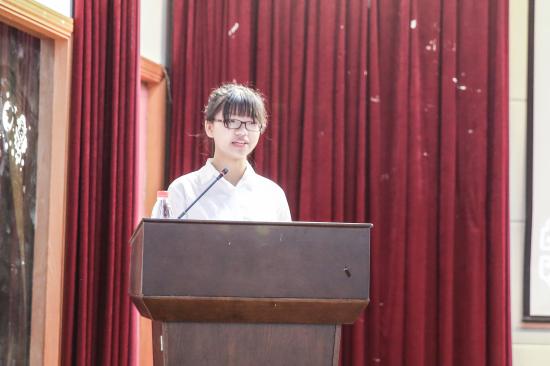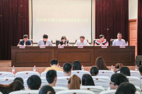 接着,天华骄子代表徐玮祎、优秀班助理代表王梦欣分享了他们的学习和工作的感悟。他们用自己的成绩、用行动让同学们体会到了榜样的力量,他们的学习和工作经验给大一同学带来了新的启发和思路,对他们信心树立、学习技巧等方面起到了非常重要的引领作用。杨媛欣宇代表16级实习班助理发言:他们将会承载着学长们的祝福奋力前行,在未来的工作中向优秀班助理学习,拼搏奋斗,无私奉献。