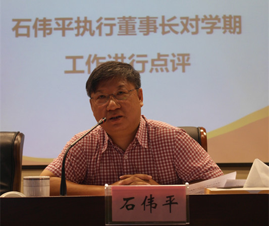 最后,执行董事长石伟平对本学期学校各项工作进行了点评,充分肯定了党、政、监各部门以及全体教职工的辛勤工作,对学校未来的发展寄予了厚望。