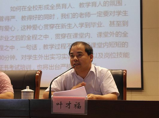2015年7月3日,学校在明华楼五楼报告厅召开了2014-2015学年第二学期期末教职工大会。学校执行董事长石伟平、党委书记韩晓玉、校长叶才福、总校监郭伟奇、特别顾问陆建非等学校领导及200多位教职工出席了会议。会议由校长叶才福主持。
