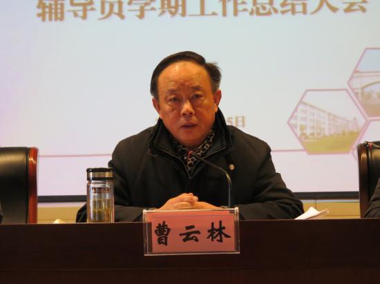 校党委副书记、学保处处长曹云林老师对本学期以来学生工作的开展情况进行了总结,曹书记首先回顾了本学期学生管理工作的四项特色工作、八项常态化工作和六项大型学生工作,并对以上工作进行了剖析。曹书记就做好学生工作提出了五点启示:一是学生工作,必须融入天华教育理念;二是学生工作,必须要重视自身的素质建设;三是学生工作,必须要有担当的精神;四是学生工作,必须提升防风险控制能力;五是学生工作,必须要有群策群力的团队精神。